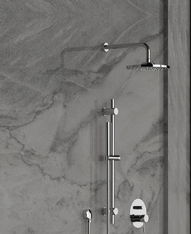 A round line shower kit is a complete shower system that includes an overhead shower, hand shower, mixer controls, and installation accessories with a rounded design style. Enquire today at Deluxe Plumbing Supplies Qatar.